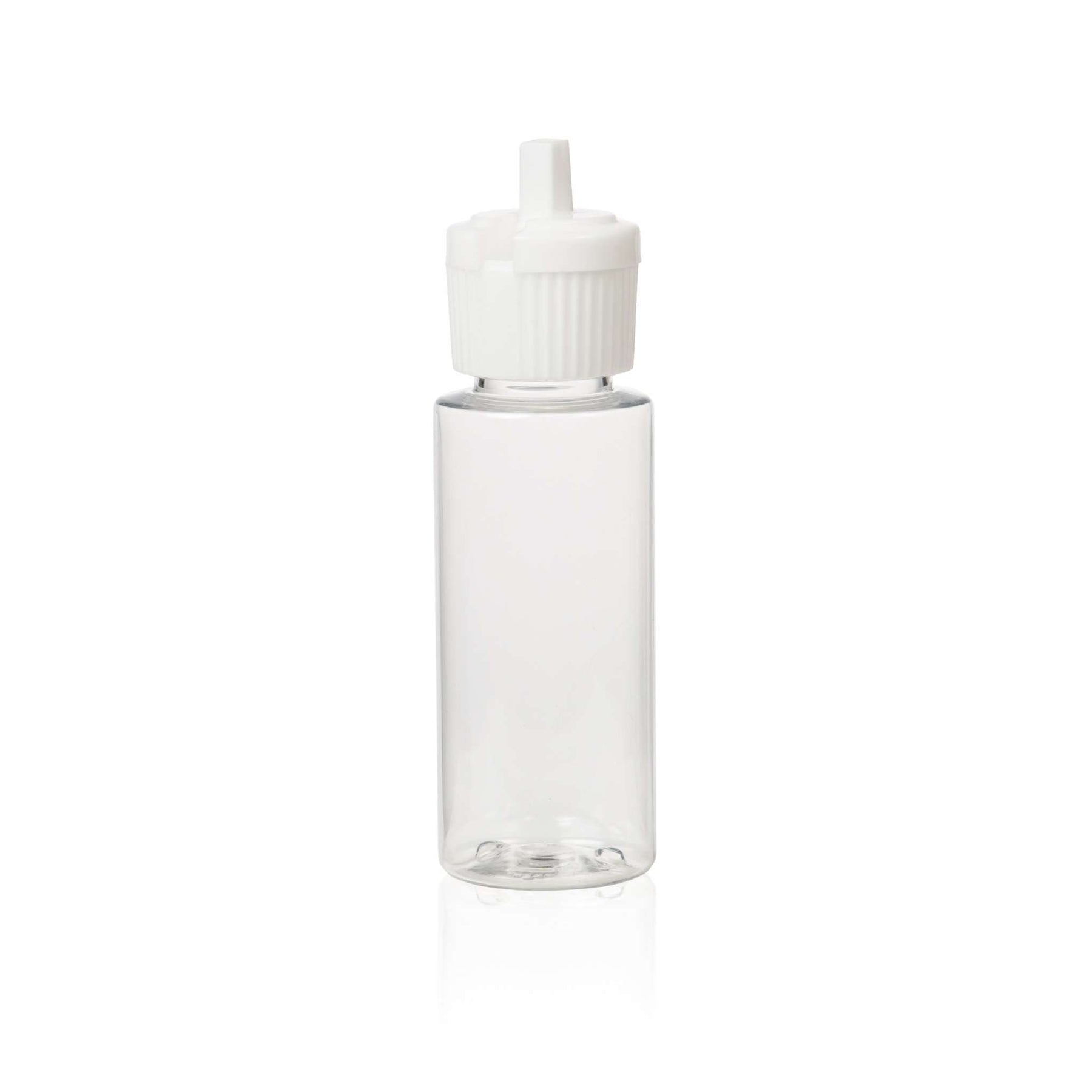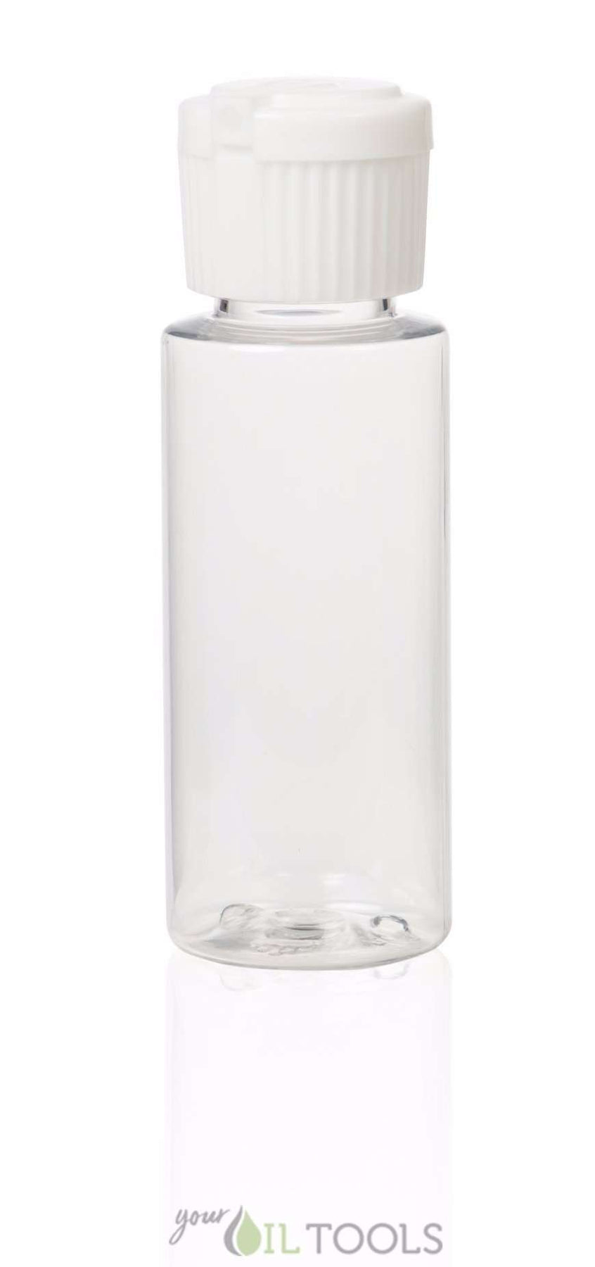 1 oz Clear PET Plastic Cosmo Bottle w/ White Flip Top