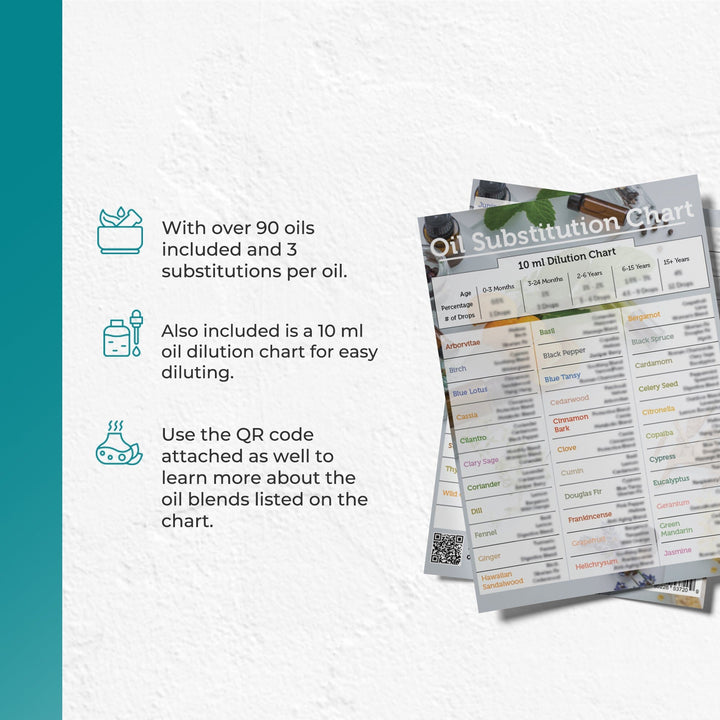Use the QR code attached as well to learn more about the oil blends listed on the chart.