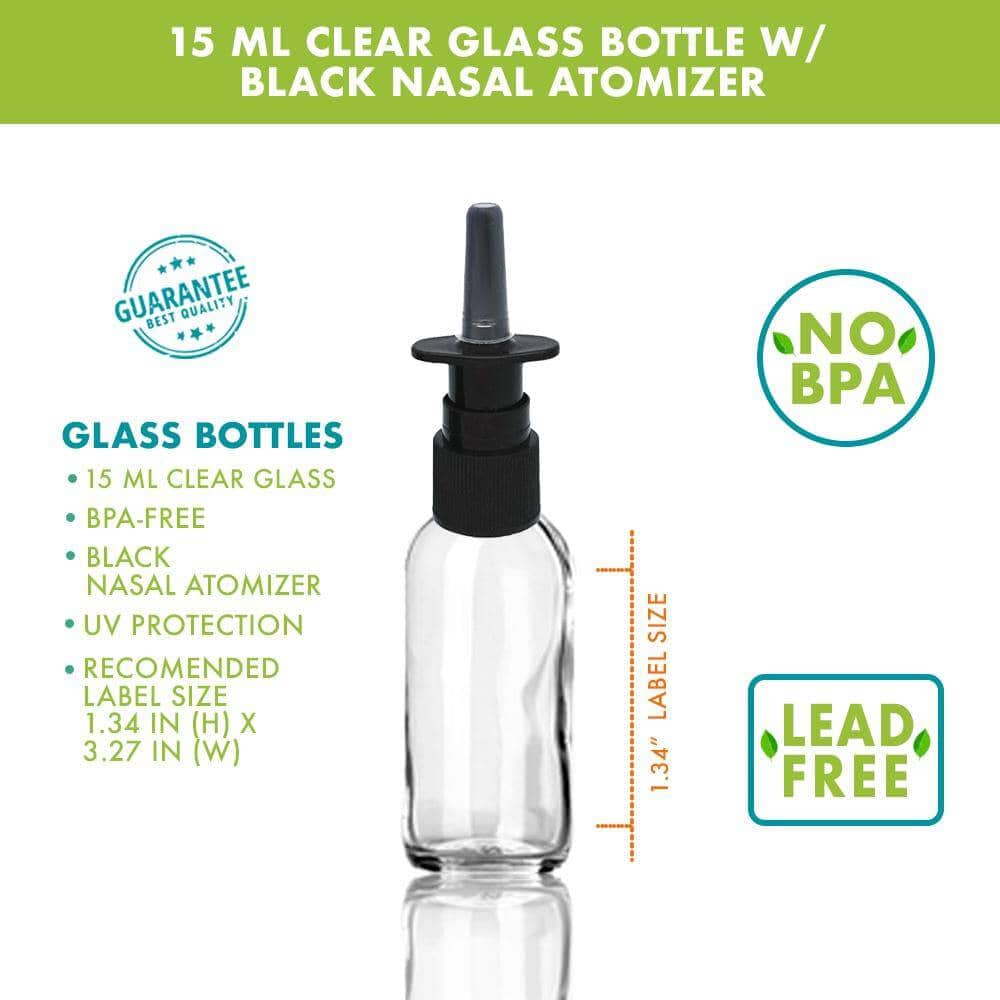 15 ml Clear Glass Bottle w/ Black Nasal Atomizer