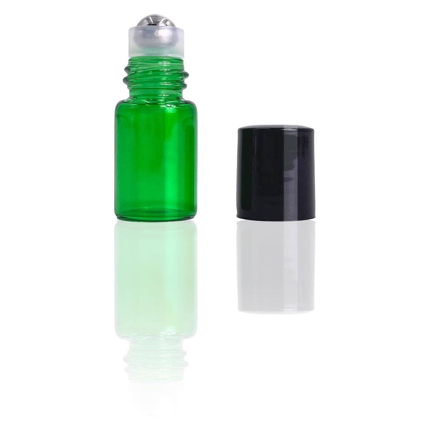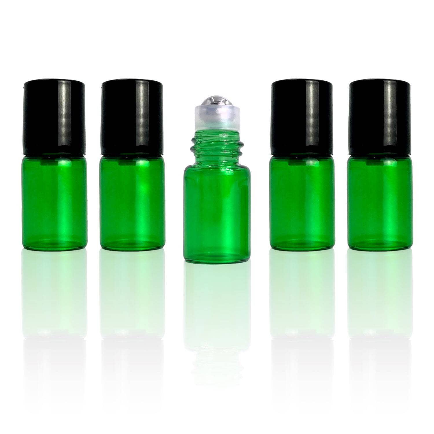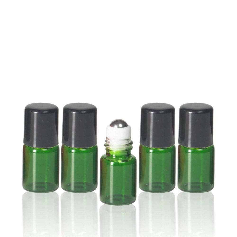 2 ml Green Glass Vials w/ Stainless Steel Rollers & Black Caps (Pack of 5)