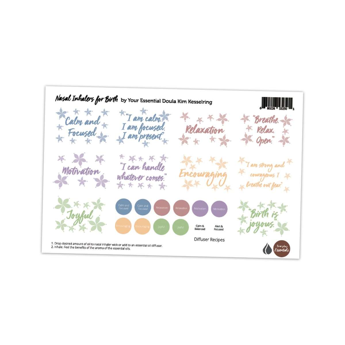 Organize your nasal inhaler essential oil recipes with this label sheet! Use in conjunction with your Nasal Inhalers for Birth Make & Take. Includes two additional bonus lid stickers.